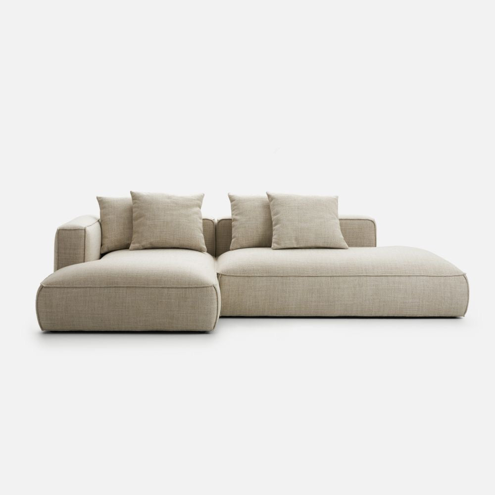 A cozy L-shaped sofa with a chunky silhouette, deep foam cushions, and soft, textured fabric—designed to bring big comfort to small spaces. Perfect for lounging, relaxing, and making any corner feel like home.