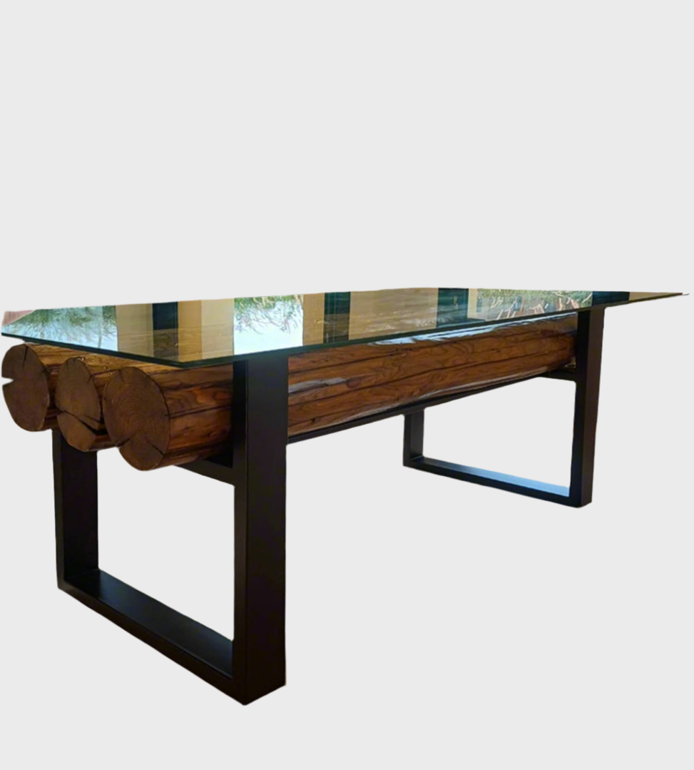 Elevate your dining experience with the American Pitchpine Trunk Dining Table. Crafted from rich, time-worn wood, each table tells a unique story of craftsmanship and history. Featuring a durable securit glass top and strong metal legs, this table combines timeless elegance with modern durability. With a spacious surface that comfortably seats six, it’s perfect for family dinners or hosting memorable gatherings. The blend of rustic wood and sleek metal adds a sophisticated, vintage charm to any dining space, making it not just a table, but a statement piece that brings warmth and character to your home.