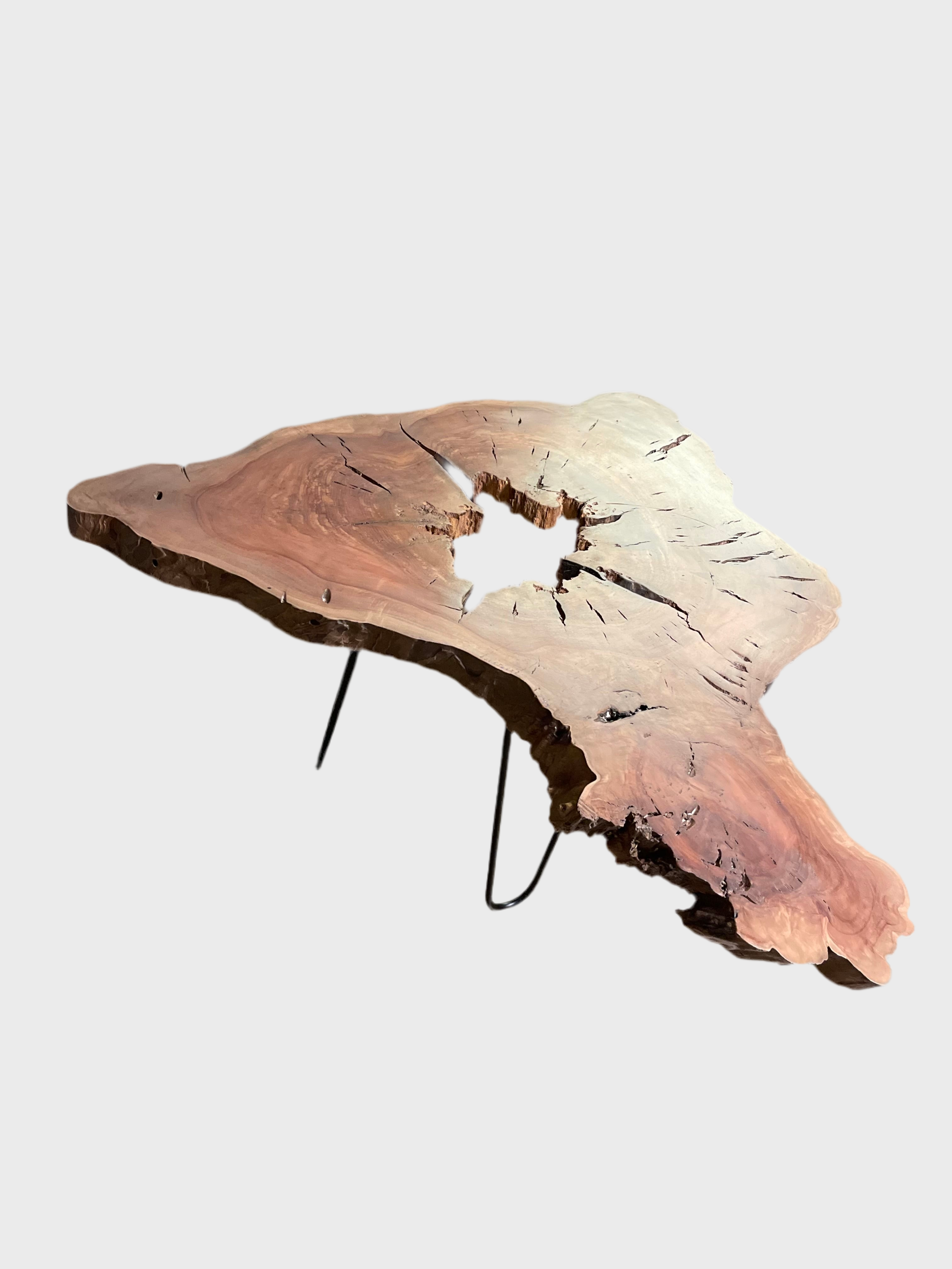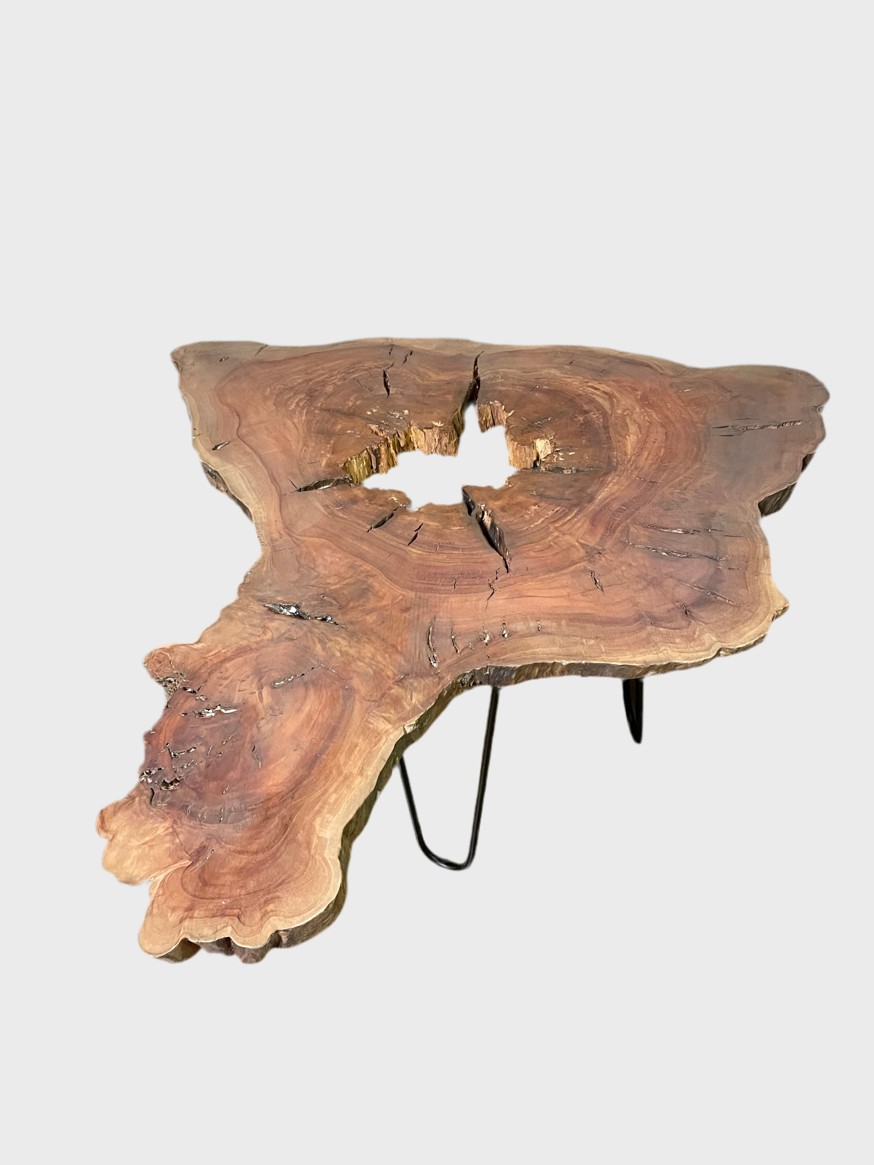 Raw, bold, and one-of-a-kind. With its organic heart opening and sleek black steel tripod base, this piece isn’t just furniture — it’s a conversation starter. Bring home a design that’s as unique as you are.