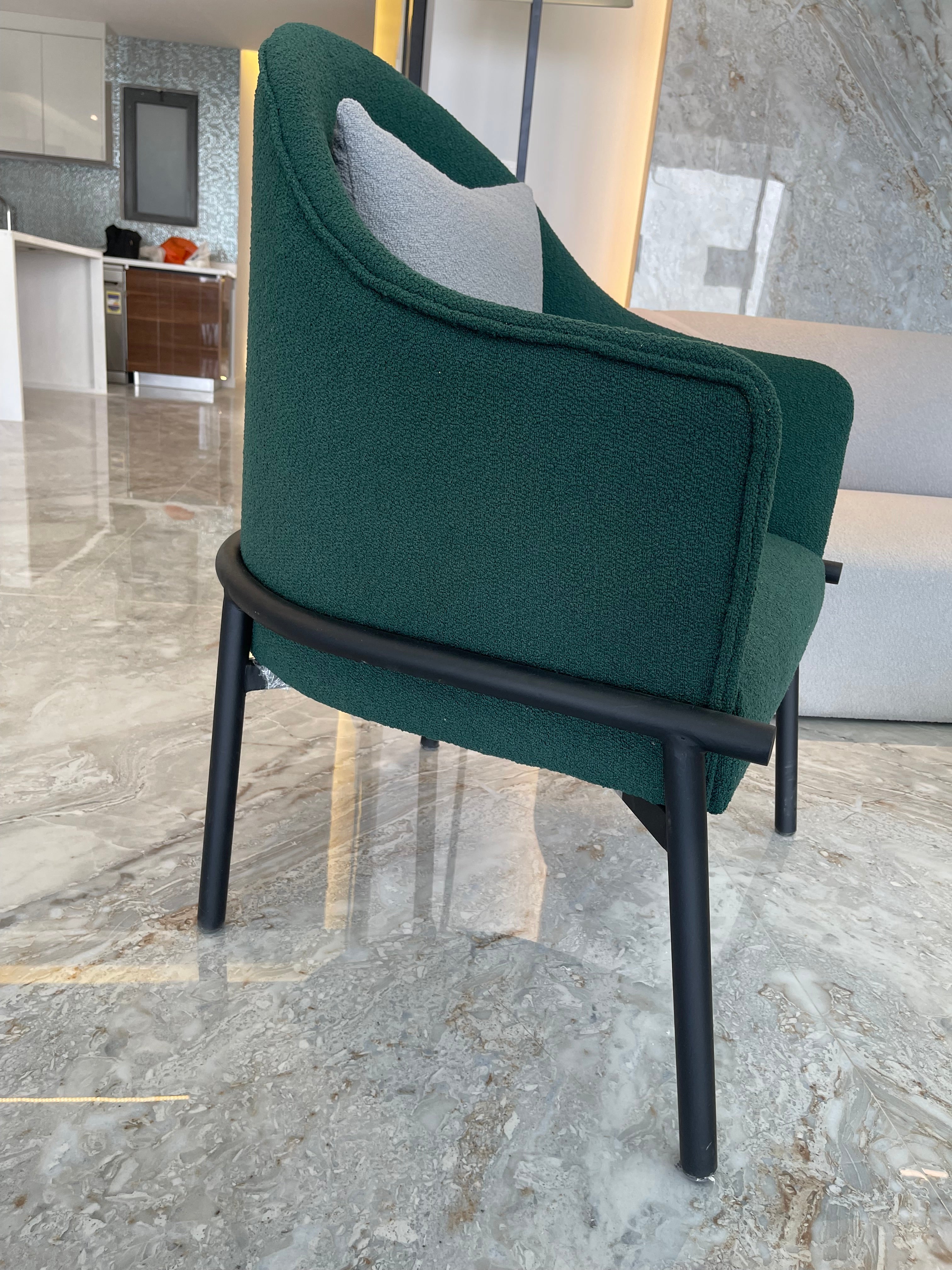 Elevate your living room with this sleek metal and fabric armchair, combining durability with contemporary style. The sturdy metal frame offers a clean, minimalist look, while the plush fabric upholstery provides exceptional comfort. Designed with a gently curved backrest and supportive armrests, it’s perfect for lounging or entertaining. Its versatile design and neutral tones effortlessly complement any decor, making it a stylish and functional addition to your space.